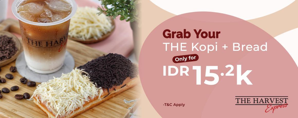 Promo THE Kopi + Bread Rp 15.200 berlaku selama persediaan masih ada di masing-masing store