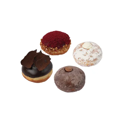 Enjoy a delightful set of four fluffy doughnuts, coated and filled with flavors that melt in your mouth. This set of 4 is perfect for sharing or keeping all to yourself.