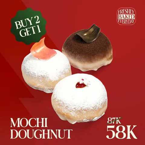 Buy 2, Get 1 FREE Mochi Doughnut! The chewy treat that makes every Payday a little sweeter.