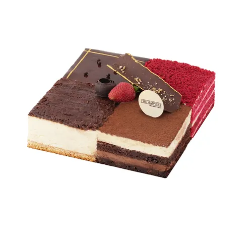 *4-in-1 chocolate-cheese goodness featuring our champion deluxe creations: Chocolate de Ville, Triple Chocolate, Red Velvet and Chocomaltine Cheesecake