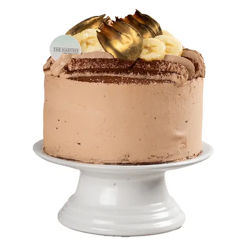 Set on a decadent chocolate crumbs base, and topped with banana slices and milk chocolate garnish.