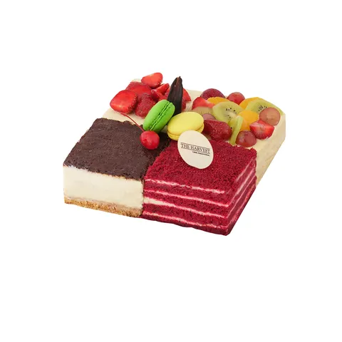 Cheesecake Signature features a delightful assortment of flavors, including Red Velvet Cake, Chocomaltine Cheesecake, Mix Fruit Cheesecake, and Strawberry Cheesecake. A perfect blend of indulgence for cheesecake lovers!