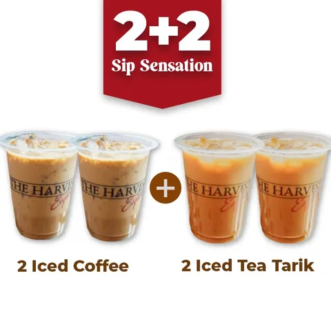 Enjoy the rich, bold flavor of 2 Iced Coffees paired with the creamy goodness of 2 Pulled Iced Tea Tarik. Served over ice for the ultimate refreshment.